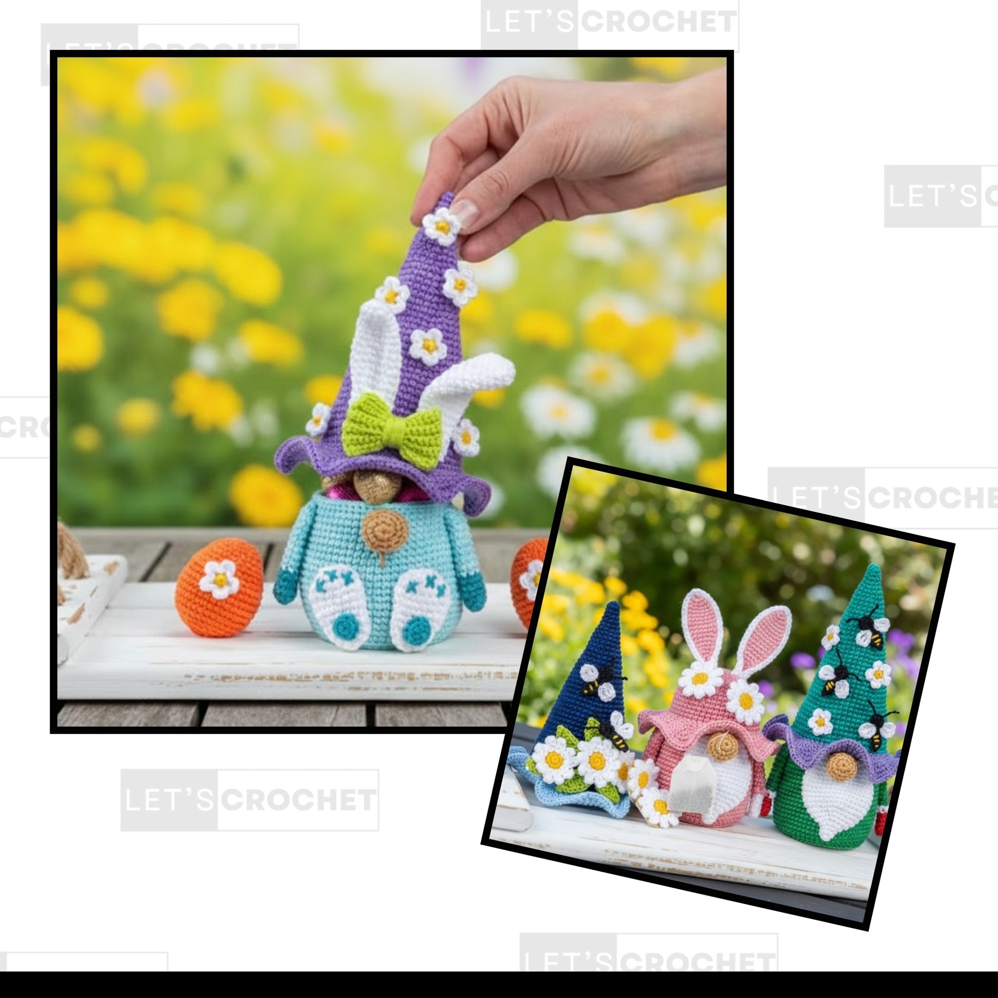 Bring a touch of whimsy to your handmade décor with the Enchanted Garden Gnome Trio Crochet Pattern, featuring an adorable bunny gnome designed to hold sweet treats and a charming gnome bowl adorned with crochet flowers. This delightful set is perfect for seasonal decorating, gifting, or creating playful centrepieces that double as functional candy holders.