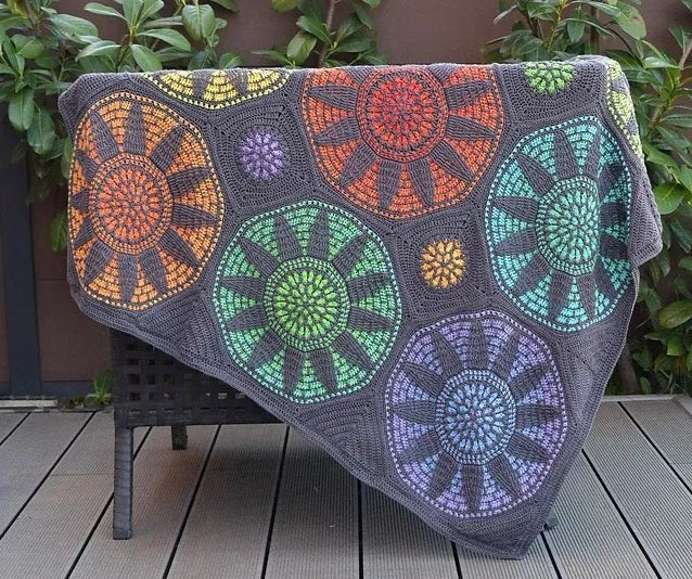 "This blanket was a joy to make—bold, colourful, and full of life! The pattern was easy to follow, and the final result truly brightens up any space like stained glass in yarn form." ⭐⭐⭐⭐⭐ Vivianne D.